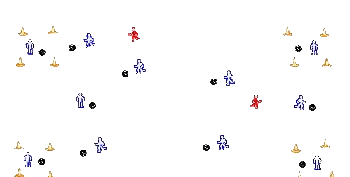 • Watch and help players determine when to attack and when to leave the cone, also when to defend and stay at home around the cone.